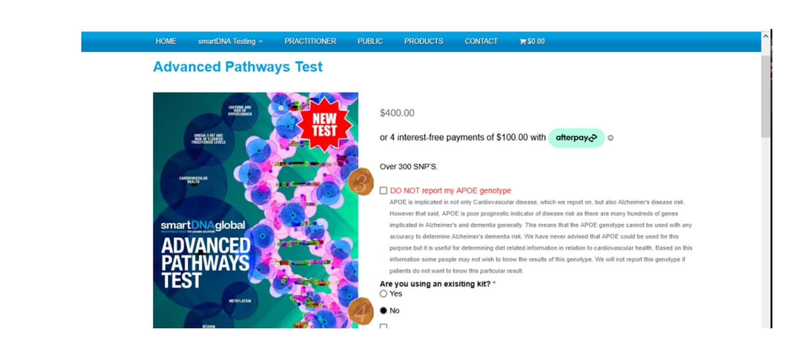 Step 3. Please do not tick “DO NOT report my APOE genotype”. Leave it blank. We want to know about APOE.